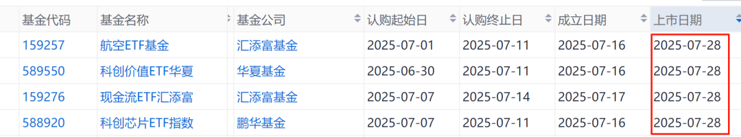 上市方面,下周即将有4只ETF上市,分别为航空ETF基金、科创价值ETF华夏、现金流ETF汇添富、科创芯片ETF指数。