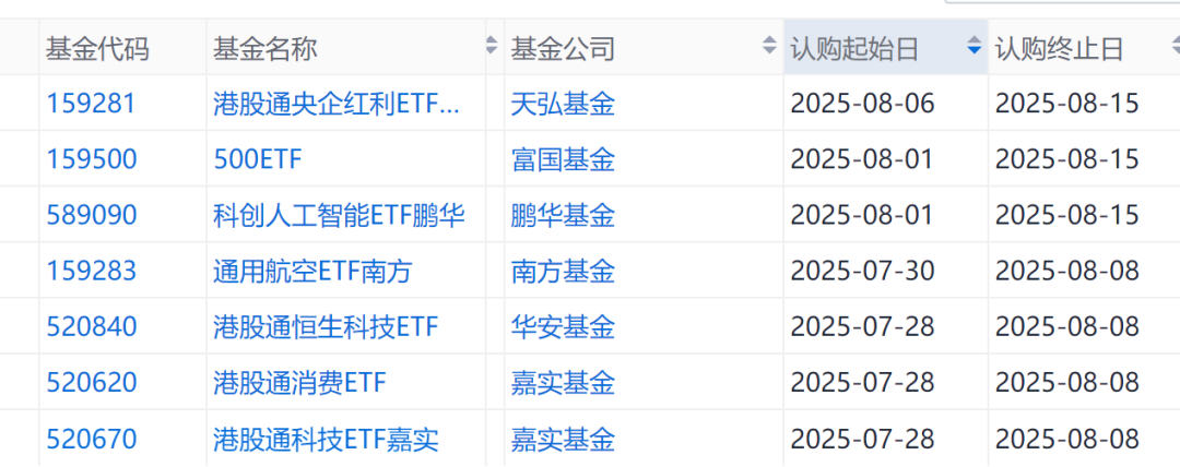 根据Go-Goal ETF数据,下周即将有6只ETF发行,包括港股通消费ETF、港股通科技ETF嘉实、港股通恒生科技ETF、通用航空ETF南方等。