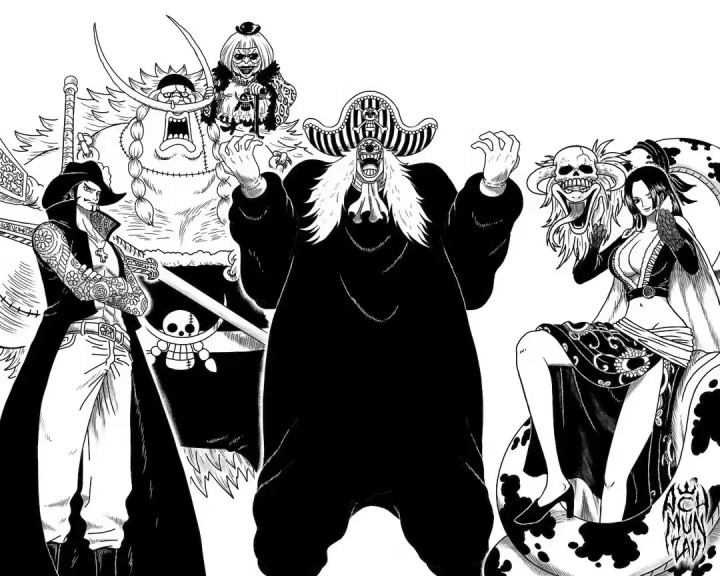 十字公会是七武海的翻版,三个七武海就可以建立一个四皇团,不过十字公会是最弱的四皇团。鹰眼是最强的人,老沙和小丑巴基的实力很不错,他们得罪了海军本部,毕竟他们悬赏通缉海军,让海军损失惨重。